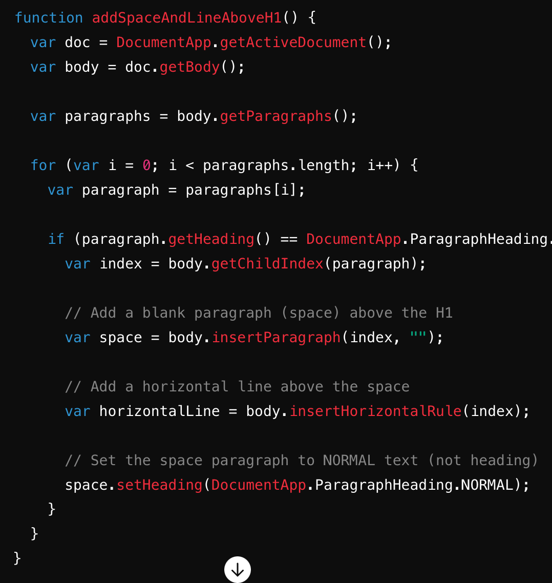 How to Add Space and a Horizontal Line Above All H1 Headings in Google Docs Using Google Apps Script
