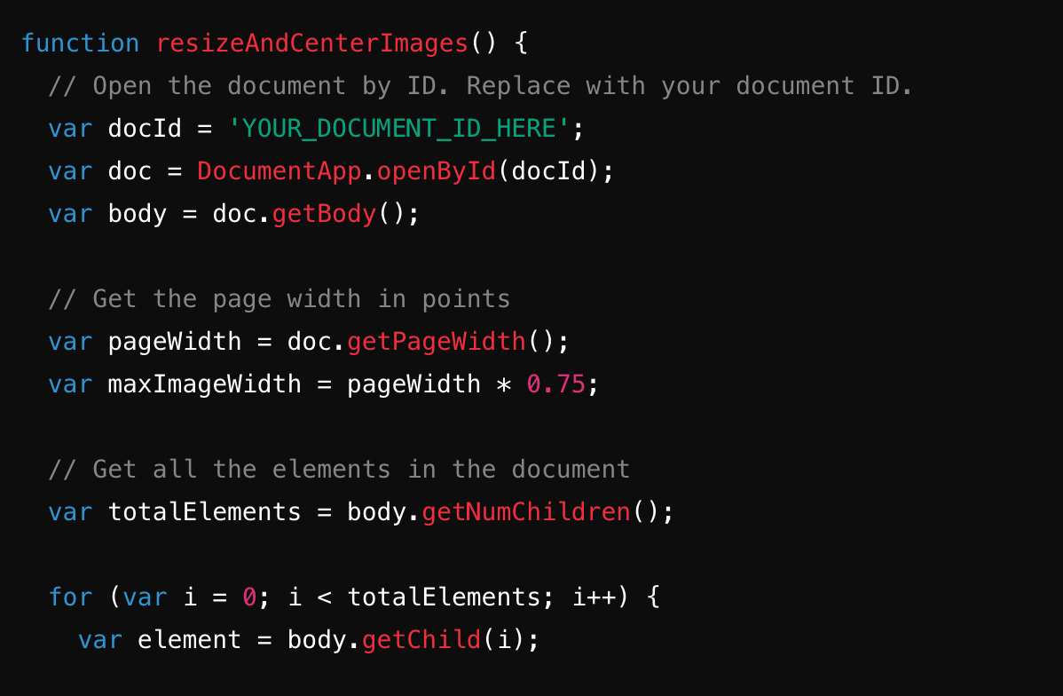 Resizing and Centering Images in Google Docs with Google Apps Script