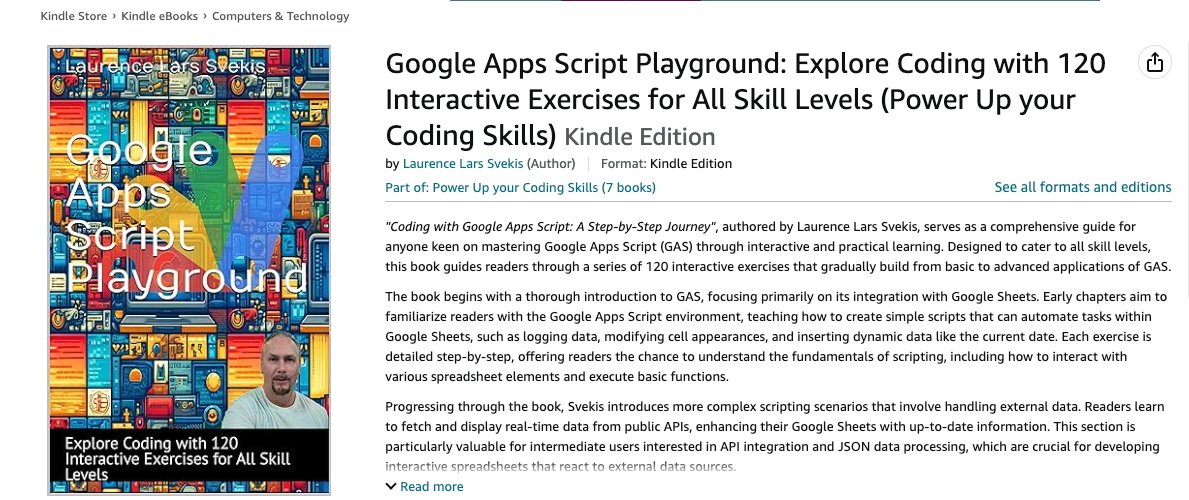 📢 FREE Kindle Promotion Alert! Get your copy of “Coding with Google Apps Script: A Step-by-Step Journey” absolutely FREE until May 22, 2024! US https://www.amazon.com/dp/B0D3TZXG39 CAN https://www.amazon.ca/dp/B0D3TZXG39 “Coding with Google Apps Script: A Step-by-Step Journey”, authored by Laurence Lars Svekis, serves as a comprehensive guide for anyone keen on mastering Google Apps Script (GAS) through … Read more