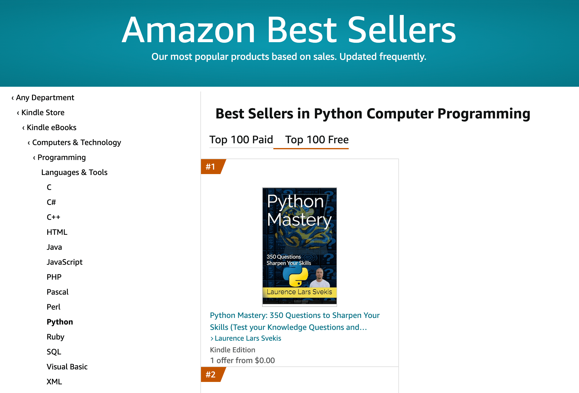 Amazon Best Sellers Get it FREE FREE Python Mastery: 350 Questions to Sharpen Your Skills