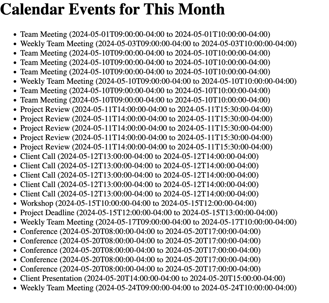 Output Calendar Events into Web App