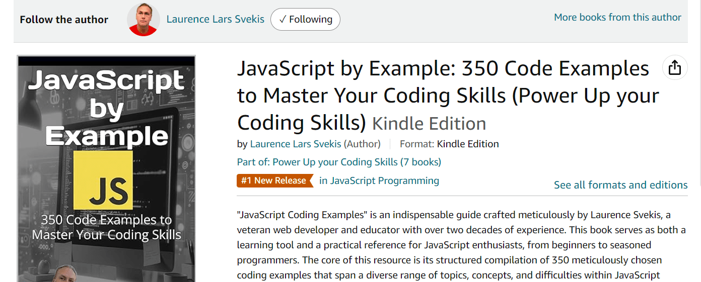 US https://www.amazon.com/dp/B0D345LCHS CAN https://www.amazon.ca/dp/B0D345LCHS “JavaScript Coding Examples” is an indispensable guide crafted meticulously by Laurence Svekis, a veteran web developer and educator with over two decades of experience. This book serves as both a learning tool and a practical reference for JavaScript enthusiasts, from beginners to seasoned programmers. The core of this resource is its … Read more