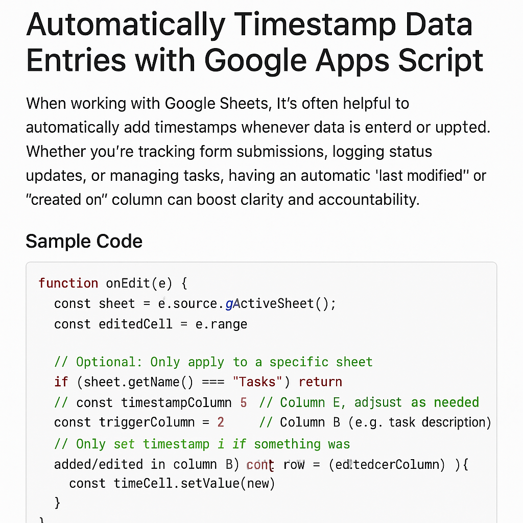 📊 Automatically Timestamp Data Entries with Google Apps Script