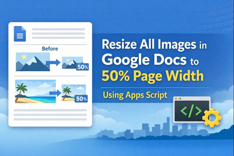 In this post, you’ll learn how to use a simple Apps Script to resize every image in a Google Doc to exactly 50% of the document’s usable width, based on the page layout and margins.