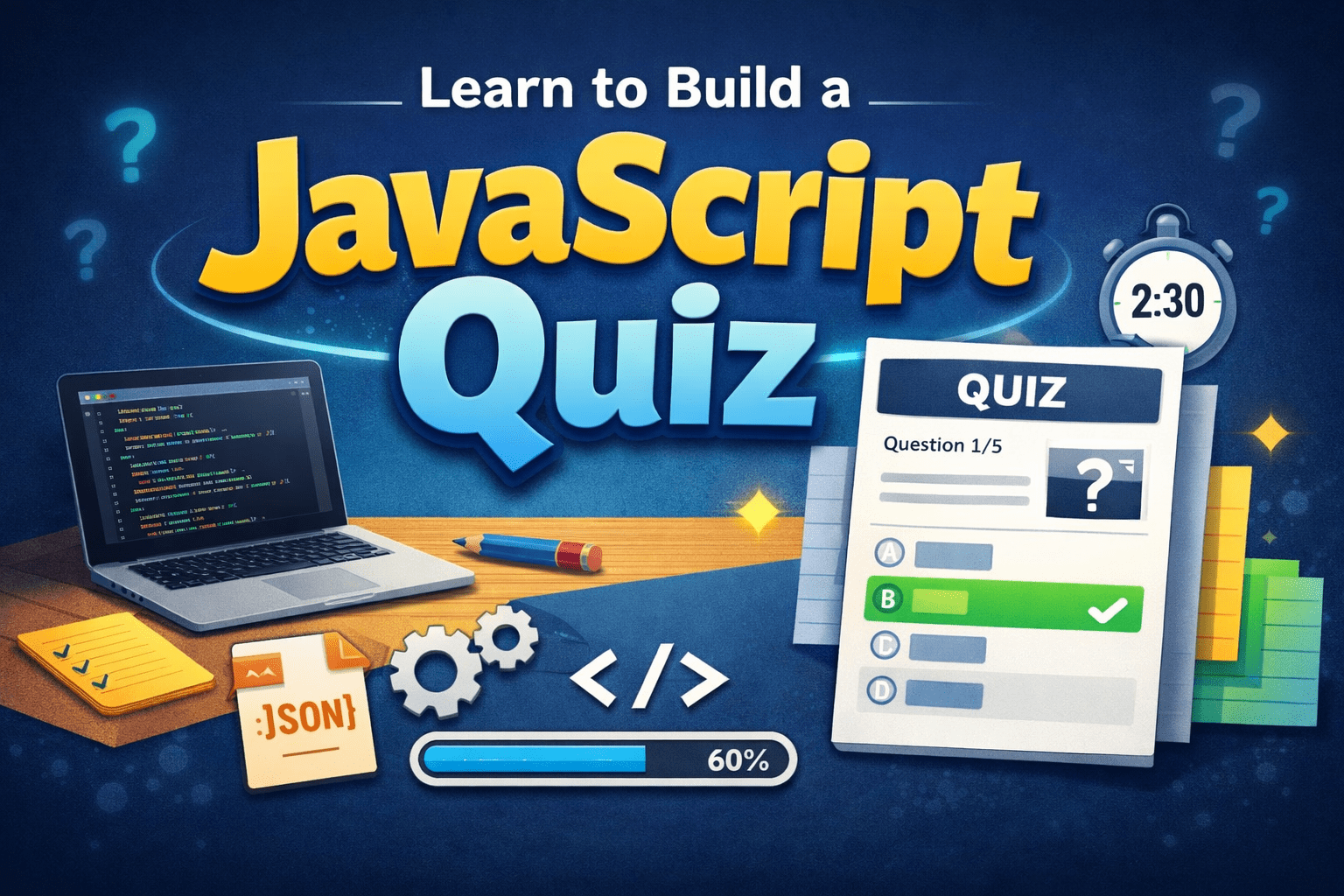 This tutorial shows you how to build a simple quiz app using modern JavaScript. The quiz loads questions from a JSON file, lets users pick answers, tracks progress, and displays a final score.