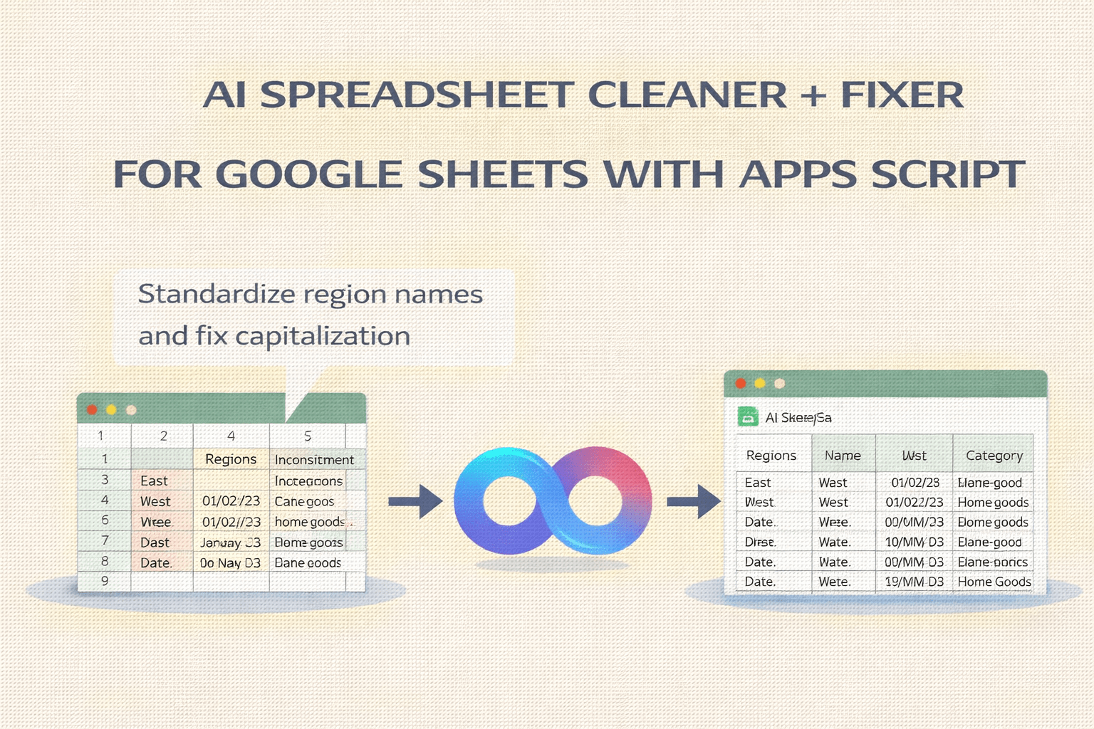 Automatically clean, standardize, and fix messy spreadsheet data using Google Apps Script + Gemini.