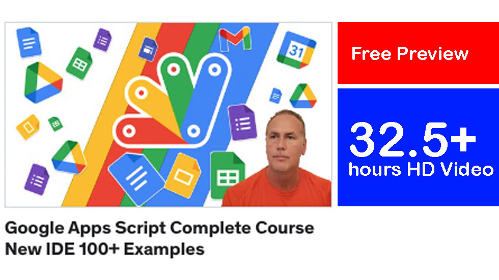 4.5 Stars – 32.5 hrs HD video content Google Apps Script Complete Course New IDE 100+ Examples https://www.udemy.com/course/course-apps-script/?couponCode=AUGLEARN2