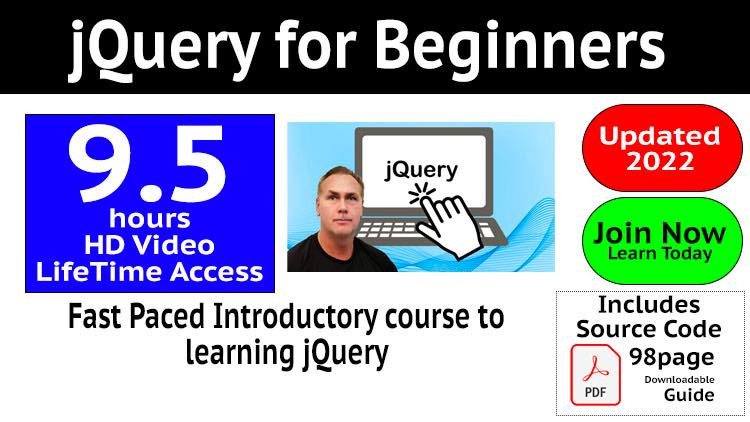 jQuery for beginners interactive and dynamic web pages : Quick and easy Guide to working with jQuery Learn to add jQuery to your webpages most popular JavaScript library website. Bonus Downloadable PDF Guide 9,000+ students https://www.udemy.com/course/quick-learning-jquery-web-development/?couponCode=BESTOF22https://www.udemy.com/course/quick-learning-jquery-web-development/?couponCode=BESTOF22